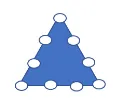 【分析】:每行4棵,种三行应该是12棵,现在是9棵,一定是有重复计算的3棵,种在三角形的三条边上,三个顶点各种一棵,然后每条边两个顶点之间种2棵。如图(用o代表树)。
